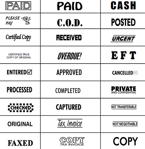 A wide rage of self inking stamps, date stamps, multi colour stamps, embossers.